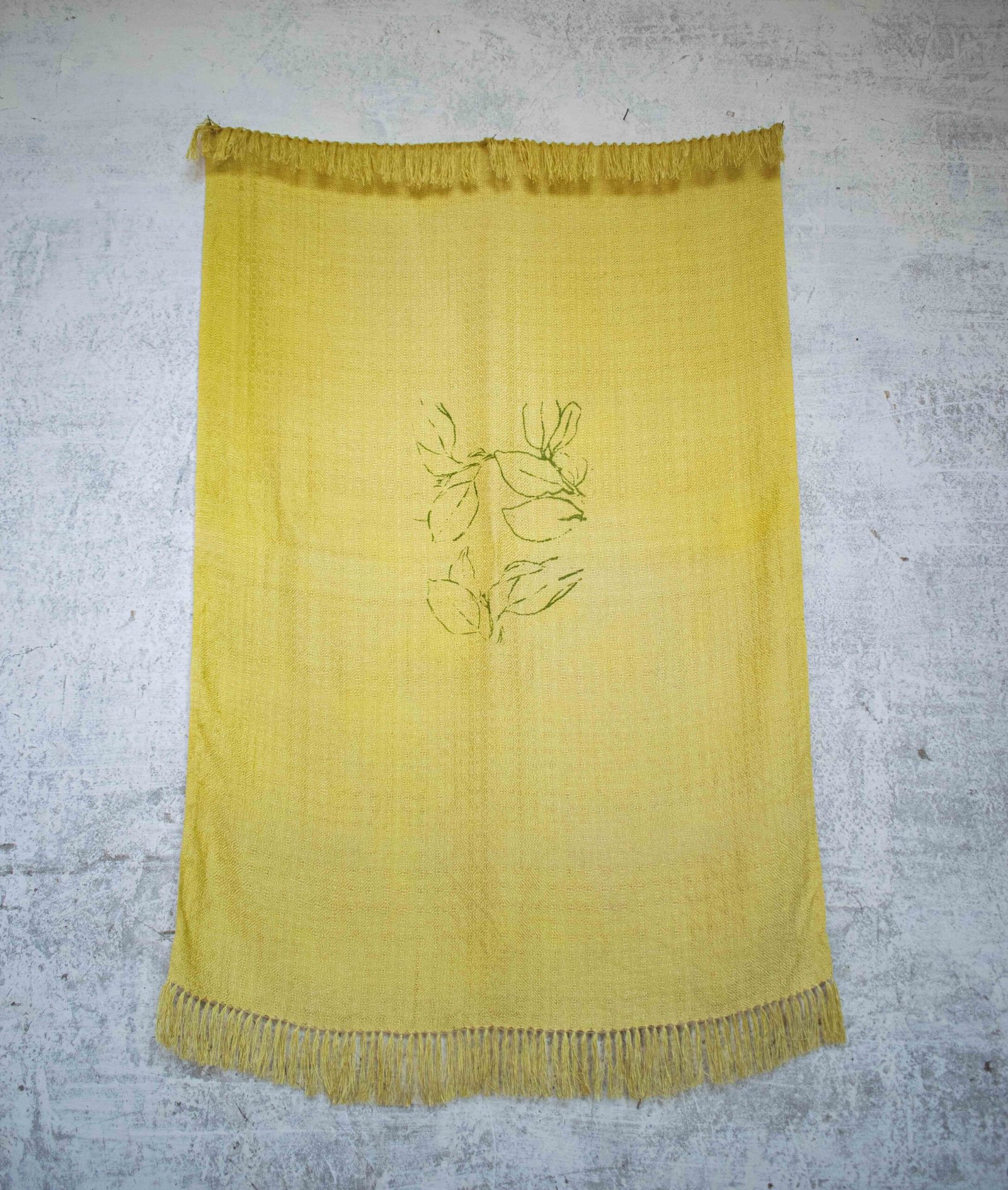 Since 2021, Anyi Ballesteros has been researching dyeing techniques using coca leaves through her project Pajarita Caucana, developed in collaboration with designers Daniela Rubio, María Alejandra Torres, and Mónica Suárez. This process led them to discover 96 natural hues derived from the plant, ranging from yellows and greens to browns and beiges.Her collection “Essence, Memory, and Transformation” consists of three shawls designed and woven by Agroarte artisans using organic silk thread dyed with coca leaves. Created collectively, these pieces evoke the history and resilience of their communities. The shawl “Renacer” (Rebirth) alludes to new narratives of the coca plant and its potential for a sustainable future; “El Alba” (Dawn) embodies the serene dawns of Cauca; and “Semilla” (Seed) represents birth, with coca sprouts emerging in soft yellow tones—the result of dyeing experiments with coca leaf and flour.