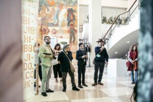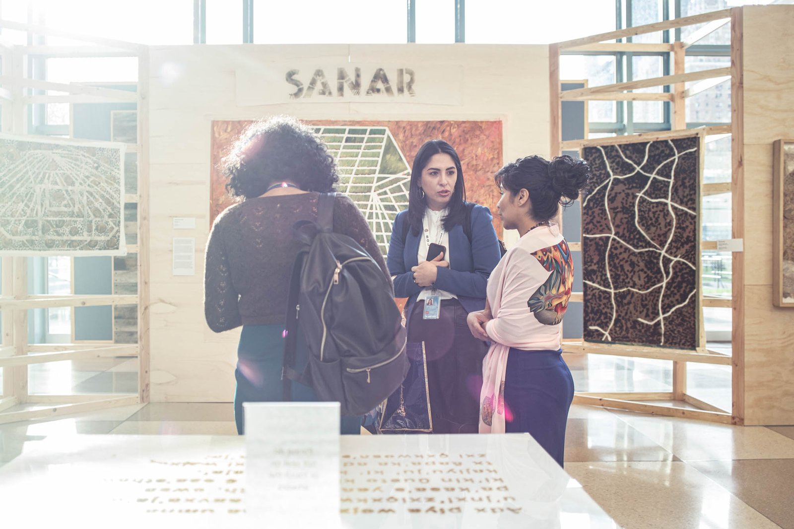 Liana led two guided tours of the exhibition at the UN. On November 7, Angélica Cuevas and artist Tatiana Arocha hosted a Spanish-language tour, while on November 8, Giselly Mejía and Juan Pablo Caicedo guided the English-language group. These visits provided context on the works and deepened engagement with the exhibition’s political and cultural significance.